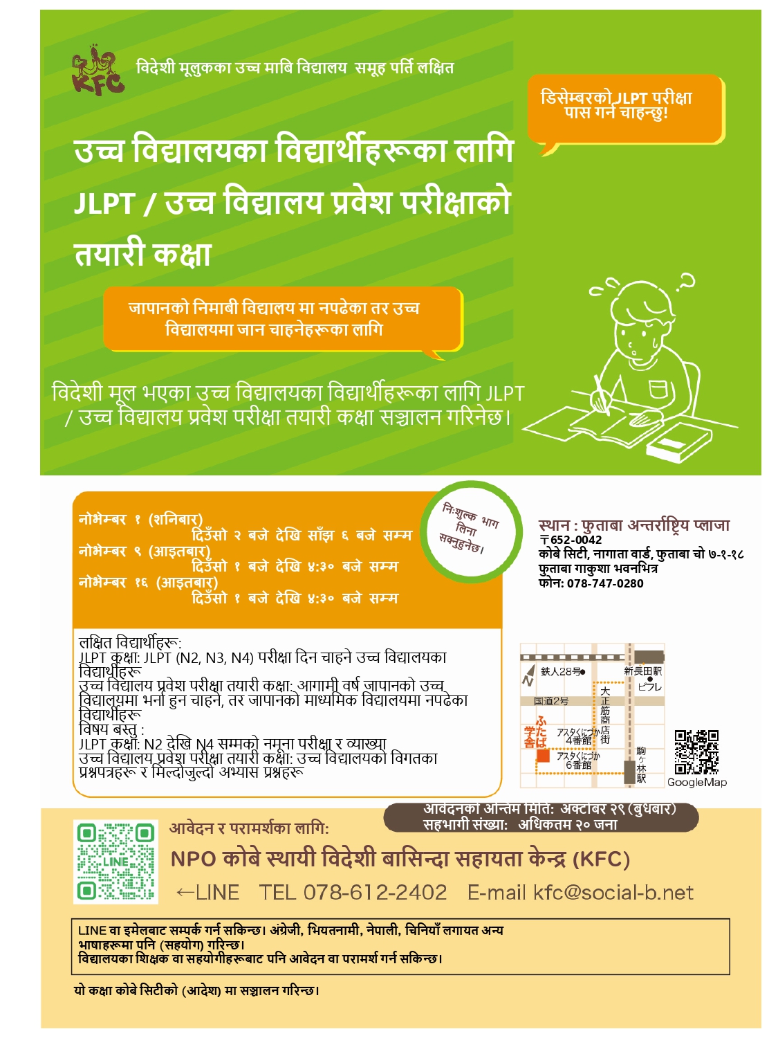 11月 高校生世代のためのJLPT・高校入試対策クラスを開講します